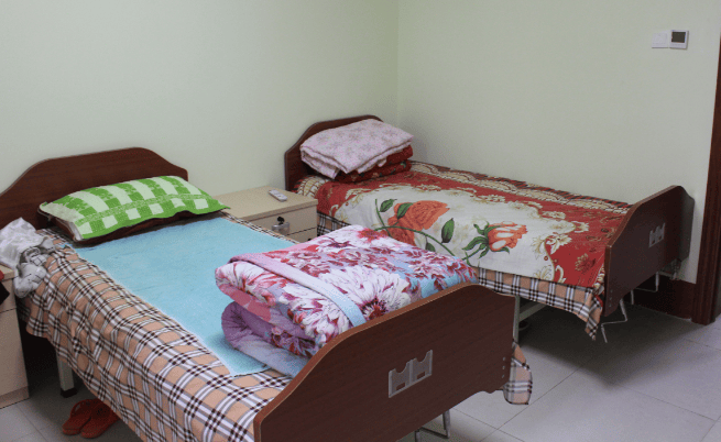 严格遵循居住标准,单间使用面积不小于10平方米,双人间不小于14平方米,多人间不小于18平方米。每间居室配备单人床、床头呼叫器、床头柜、桌椅、衣柜等基础家具,以及褥子、厚被、夏凉被、床单被罩等床上用品,室内设独立卫生间,配备坐便器、洗手池,满足日常起居需求。