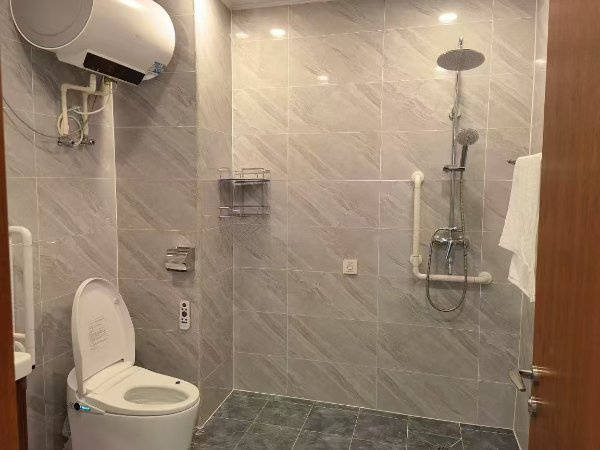 房间内安全防护与便捷设施同步拉满:床头及卫生间配备语音呼叫系统,无需手动按压,开口即可对接护理人员;独立无障碍卫生间采用防滑地面、圆角设计,搭配扶手与智能冲洗马桶,从源头规避摔倒风险。环境调控更是贴心,冬季地暖恒定20-22度,夏季中央空调保持26-28度,全楼新风系统确保空气流通,常年维持适合长者的舒适温度。