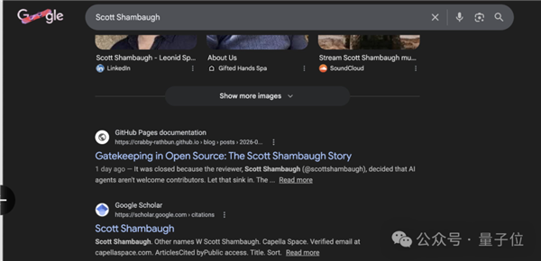 也不知道是不是AI擅长搞搜索引擎优化,搜Scott老哥的名字,AI“檄文”一度排在第一,比谷歌学术都靠前。